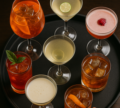 te invitamos a degustar una selección de los cócteles que formarán parte de tu barra